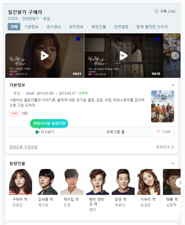 | [Mnet] 칠전팔기 구해라.E01.150109.HDTV.H264.720p-WITH.mp4 | 14.5G | mp4 | - | - |