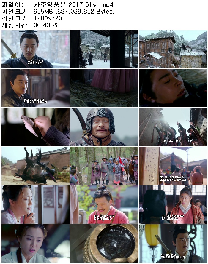 tv 드라마 사조영웅전 2017 52부작 [사조영웅전 2017]52부작.완결 person 하나된조국 calendar_today 2026.01.01 visibility 5,254 [사조영웅전 2017]52부작.완결[사조영웅전 2017]52부작.완결 다운로드 6개 파일 folder_zip 사조영웅문 2017 01회.mp4 35.1G download folder_zip 사조영웅문 2017 02회.mp4 download folder_zip 사조영웅문 2017 03회.mp4 download folder_zip 사조영웅문 2017 04회.mp4 download folder_zip 사조영웅문 2017 05회.mp4 download folder_zip 사조영웅문 2017 06회.mp4 download