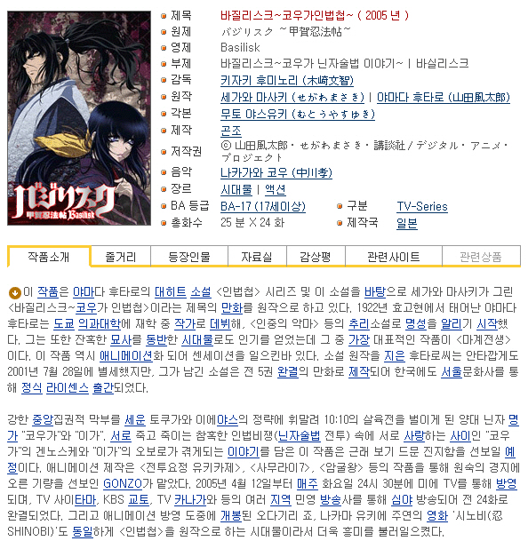 바질리스크 코우가인법첩 1-24화 완결