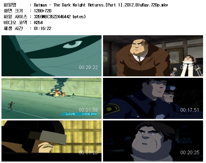 auto_awesome 애니메이션 인생 배트맨 다크 [인생] 배트맨 - 다크 나이트 리턴즈 [애니 영화] 모음 -범죄물 액션- person 멋진인생 calendar_today 2026.01.01 visibility 5,263 다운로드 4개 파일 folder_zip Batman - The Dark Knight Returns.[Part 1].2012.BluRay.720p.mkv 6.3G download folder_zip Batman - The Dark Knight Returns.[Part 1].2012.BluRay.720p.smi download folder_zip Batman - The Dark Knight Returns.[Part 2].2013.BluRay.720p.mkv download folder_zip Batman - The Dark Knight Returns.[Part 2].2013.BluRay.720p.smi download