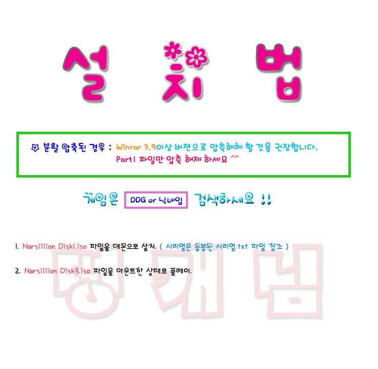 sports_esports 게임 나르실리온 한글 [ 나르실리온 (한글) ] person 떵개님 calendar_today 2026.01.01 visibility 4,559 다운로드 3개 파일 folder_zip Narsillion Disk1.iso 1.6G download folder_zip Narsillion Disk2.iso download folder_zip Narsillion Disk3.iso download