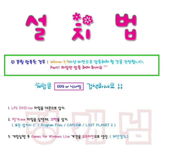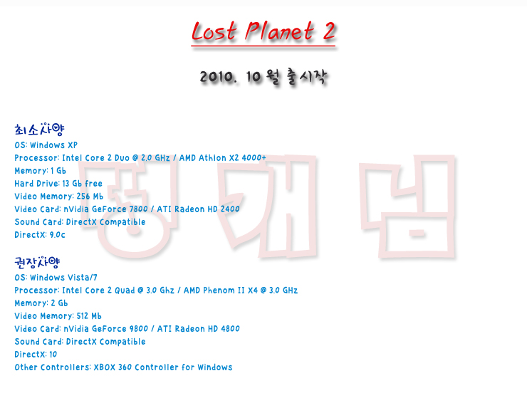 sports_esports 게임 로스트 플래닛 2 [ 로스트 플래닛 2 (한글) ] person 떵개님 calendar_today 2026.01.01 visibility 3,078 다운로드 3개 파일 folder_zip LP2 DVD1.iso 12.4G download folder_zip LP2 DVD2.iso download folder_zip 떵개.zip download