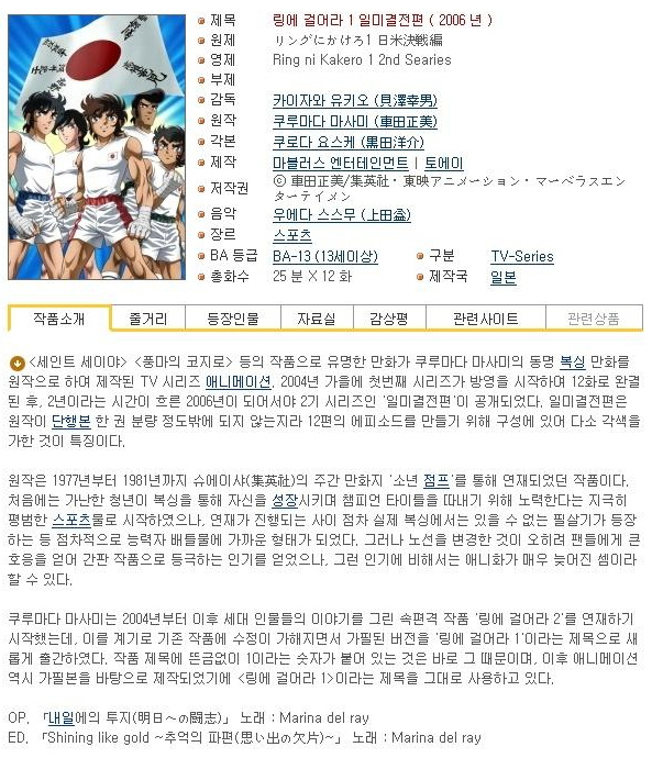 [ 쪽지사랑 ] 링에 걸어라! 1기 2기! 완결! -추억의명작 스포츠 액션!-