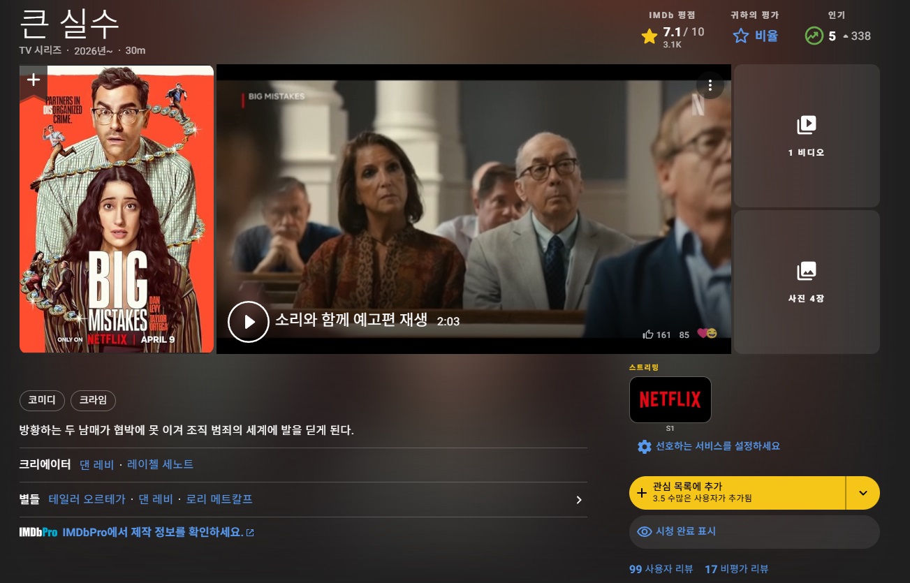 [ 4월 ] 역사상 최고 허접 범죄남매 [ 빅 미스테이크 ] 8부작 완결