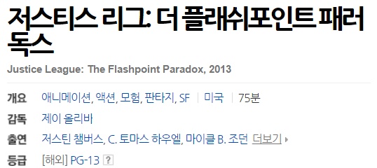 movie 영화 저스티스 리그 더 저스티스 리그 더 플래쉬포인트 패러독스 2013 person pskhost1234 calendar_today 2026.01.01 visibility 3,383 다운로드 2개 파일 folder_zip Justice League The Flashpoint Paradox 2013 1080p.mkv 2.1G download folder_zip Justice League The Flashpoint Paradox 2013 1080p.smi download
