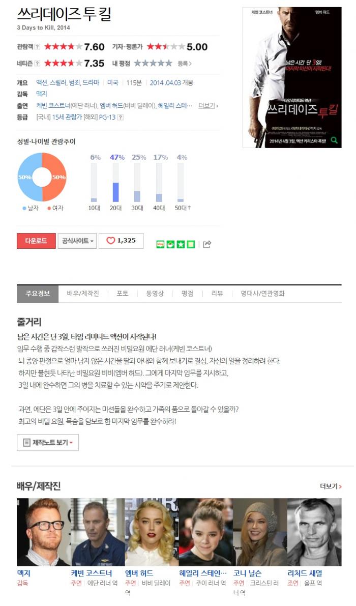 movie 영화 쓰 데 즈 쓰ㄹㅣ데ㅇㅣ즈 투 킬, 3 Days to Kill, 2014 person 민이미니2 calendar_today 2026.01.01 visibility 4,709 다운로드 3개 파일 folder_zip Intro.jpg 2.6G download folder_zip movie_image.jpg download folder_zip 쓰리데이즈투킬.avi download