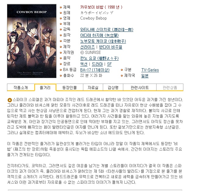 auto_awesome 애니메이션 카우보이 비밥COWBOY BEBOP 카우보이 비밥COWBOY BEBOP 1~26화 완결 person 날자2015 calendar_today 2026.01.01 visibility 3,800 다운로드 6개 파일 folder_zip Cowboy Bebop Session 01.avi 9.0G download folder_zip Cowboy Bebop Session 01.smi download folder_zip Cowboy Bebop Session 02.avi download folder_zip Cowboy Bebop Session 02.smi download folder_zip Cowboy Bebop Session 03.avi download folder_zip Cowboy Bebop Session 03.smi download
