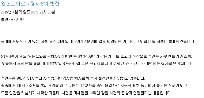 일본 느와르 - 형사 Y의 반란 [1화-10화] 완결 한글자막