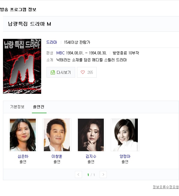 드라마 엠(M) [ 01화 - 10화 완결 ] 심은하 이창훈 김지수