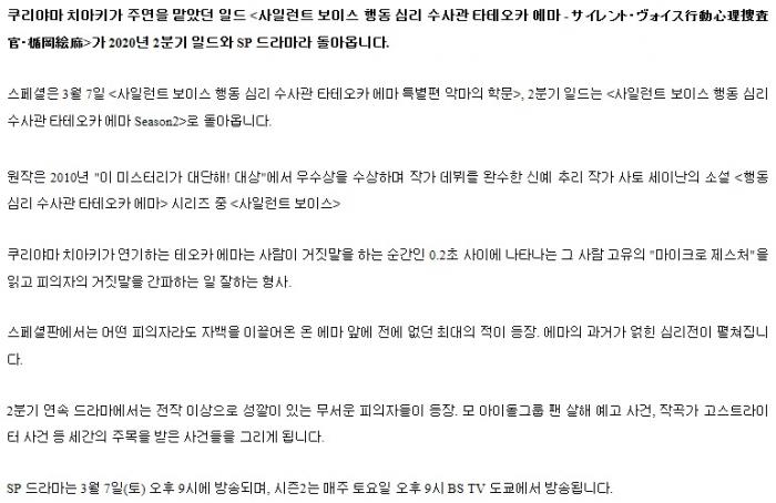tv 드라마 SP 사일런트 보이스 [SP] 사일런트 보이스 행동 심리 수사관 다테오카 에마 특별편 [720p] person 이타치우치하 calendar_today 2026.01.01 visibility 3,902 다운로드 2개 파일 folder_zip 사일런트 보이스 행동 심리 수사관 다테오카 에마 특별편 - 악마의 학문 [720p].mkv 1.2G download folder_zip 사일런트 보이스 행동 심리 수사관 다테오카 에마 특별편 - 악마의 학문 [720p].smi download